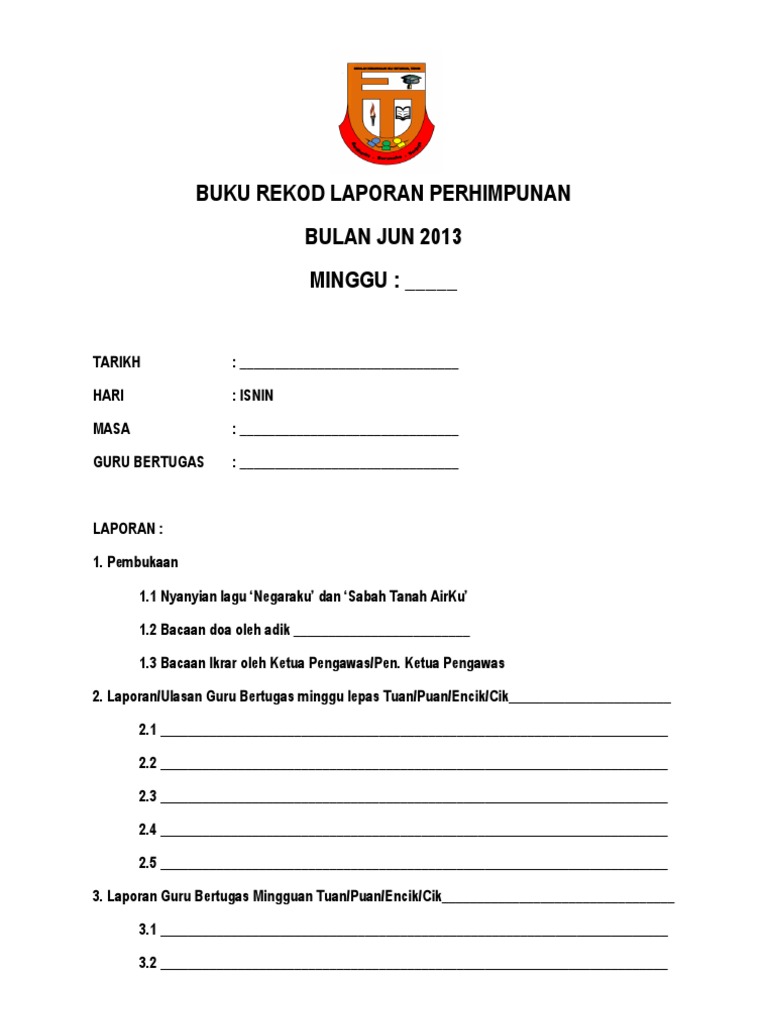 Buku Rekod Laporan Perhimpunan Pdf